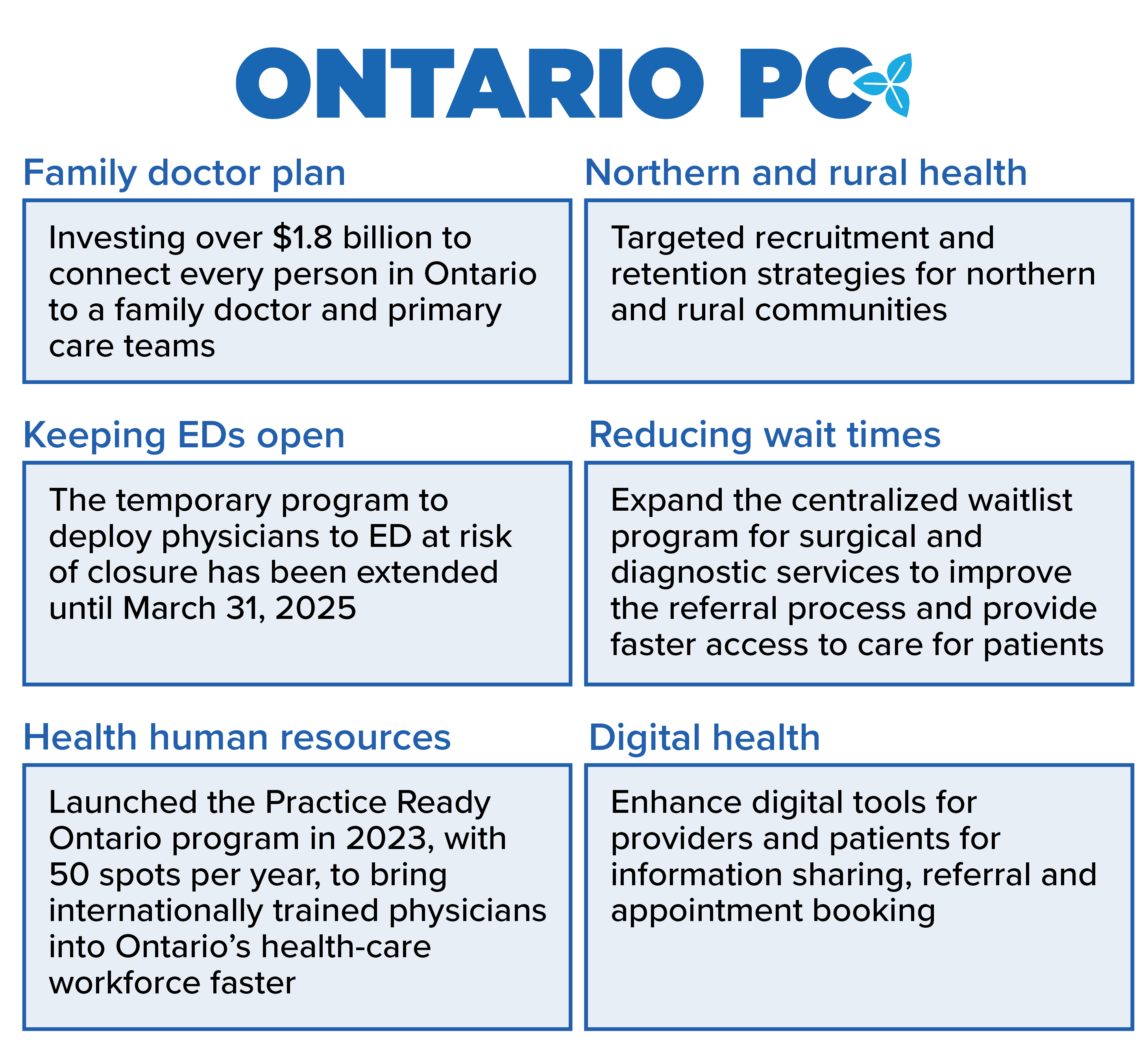 This campaign influenced the PC party to make health-care commitments consistent with our Stop the Crisis recommendations.